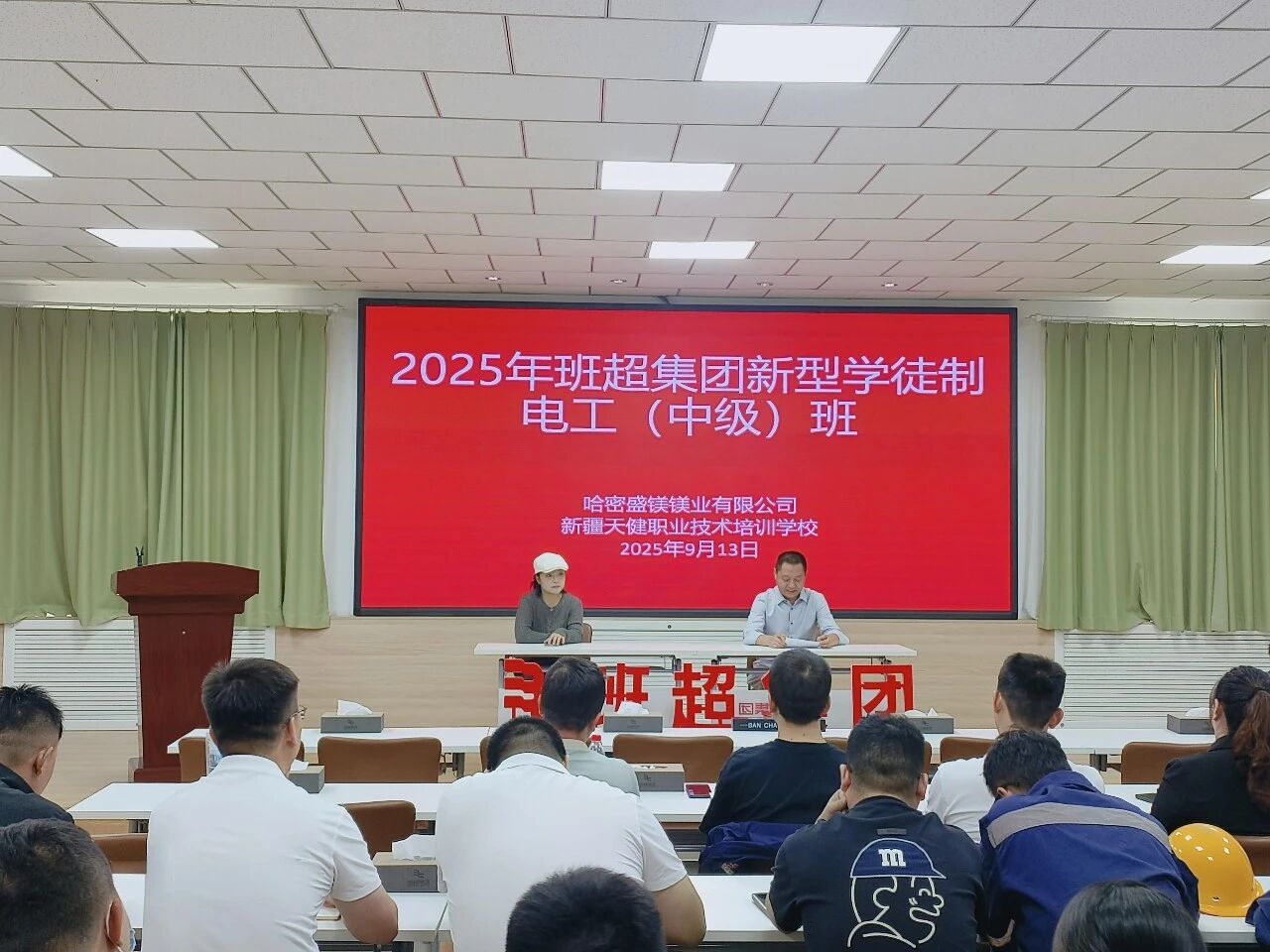 9月13日上午,班超集團聯(lián)合新疆天健職業(yè)技術(shù)培訓學校在盛鎂鎂業(yè)三樓會議室舉辦新型學徒制電工(中級)班培訓活動,旨在通過系統(tǒng)的知識講解,幫助員工夯實電工專業(yè)理論基礎(chǔ),筑牢職業(yè)技能發(fā)展根基,共計60余人參加此次培訓。  企業(yè)新型學徒制培訓是按照“政府引導、企業(yè)為主、院校參與”的原則,采取“企校雙制、工學一體”“雙師帶徒、交替培養(yǎng)”的一種新型學徒培養(yǎng)機制。企業(yè)新型學徒制培訓對于班超集團優(yōu)化高技能人才培養(yǎng)機制,加快建設(shè)知識型、技能型、創(chuàng)新型人才隊伍,加快企業(yè)青年技能人才的培養(yǎng)具有重要意義。培訓內(nèi)容涵蓋中級電工必備的電氣控制基礎(chǔ)、電機與變壓器原理、電力系統(tǒng)基本知識等核心模塊,為員工打造系統(tǒng)的理論提升平臺。 下一步,班超集團將繼續(xù)為廣大員工搭建學習提升平臺,通過舉辦高質(zhì)量、多元化的職業(yè)培訓,提高員工技能水平和職業(yè)素養(yǎng),加快公司高技能人才梯隊建設(shè),助推企業(yè)高質(zhì)量發(fā)展。 On the morning of 13 September, Banchao Group, in partnership with Xinjiang Tianjian Vocational & Technical Training School, launched a new-style apprenticeship programme for intermediate electricians on the third-floor conference room of Shengmei Magnesium. The initiative delivers systematic lectures designed to consolidate employees’ theoretical grounding in electrical work and lay a solid foundation for vocational growth; more than 60 staff members attended. The enterprise-based apprenticeship model follows the principle of “government guidance, enterprise leadership, institutional participation” and adopts a dual-track, work-integrated format in which company mentors and college instructors coach apprentices in alternating phases. For Banchao Group, the scheme is a key lever for refining its high-skilled-talent pipeline, accelerating the build-up of a knowledgeable, skilled and innovative workforce, and fast-tracking the development of young technicians. The curriculum covers core modules required for the intermediate-electrician credential—fundamentals of electrical control, principles of motors and transformers, and essential power-system knowledge—providing employees with a comprehensive theoretical upgrade platform. Next, Banchao Group will continue to expand learning opportunities for its workforce through high-quality, diversified vocational training, raising skill levels and professional competence, speeding up the construction of a high-skilled-talent echelon, and propelling the company toward high-quality development.